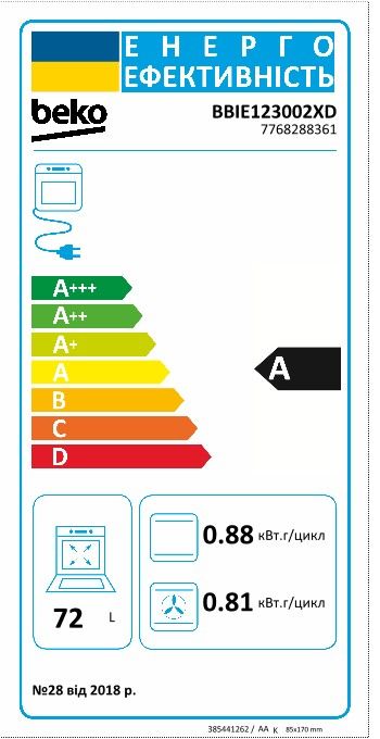 Духова шафа Beko електрична, 72л, A, конвекція, чорний