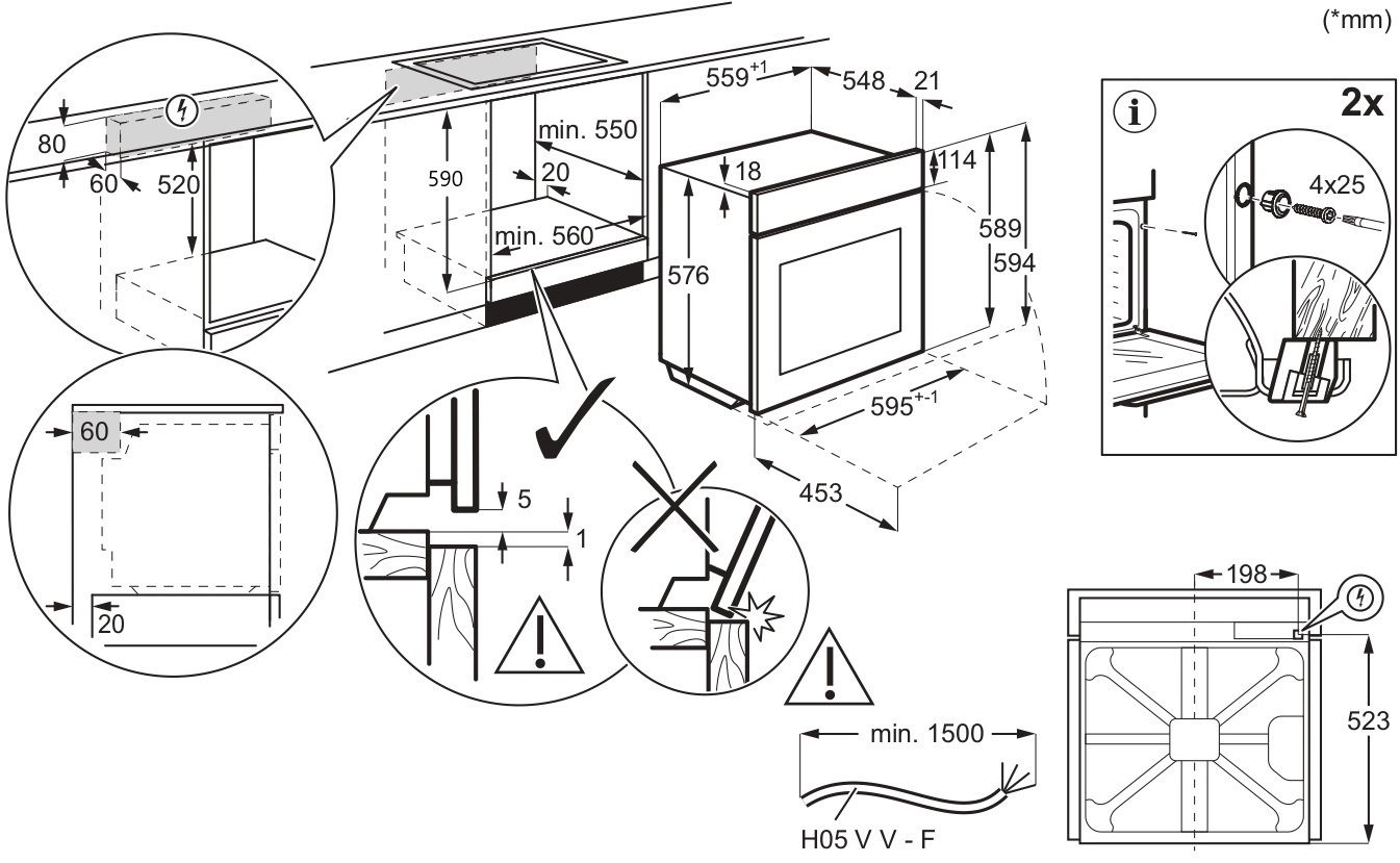 Духова шафа Electrolux електрична, 72л, A++, дисплей, конвекція, піроліз, телескопічні напрямні, чорний