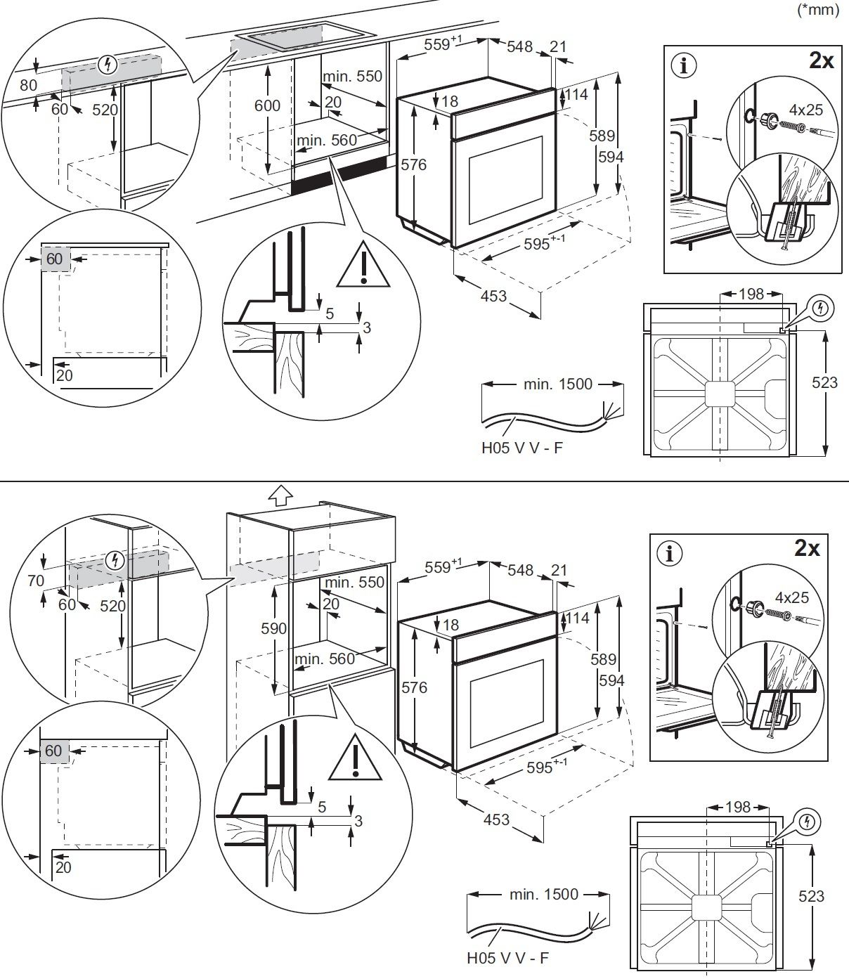 Висота для вбудовування:600 мм