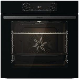 Вбудована електрична духова шафа Gorenje BO6737E02BG, 77 л, клас A+, чорний. Оснащена дисплеєм IconLed, максимальна температура 300 °C, 13 режимами нагріву, включаючи AirFry, Pizza, Гратен і AquaClean. Стильний дизайн, система охолодження DynamiCooling+ і форма HomeMade Plus для рівномірного випікання.