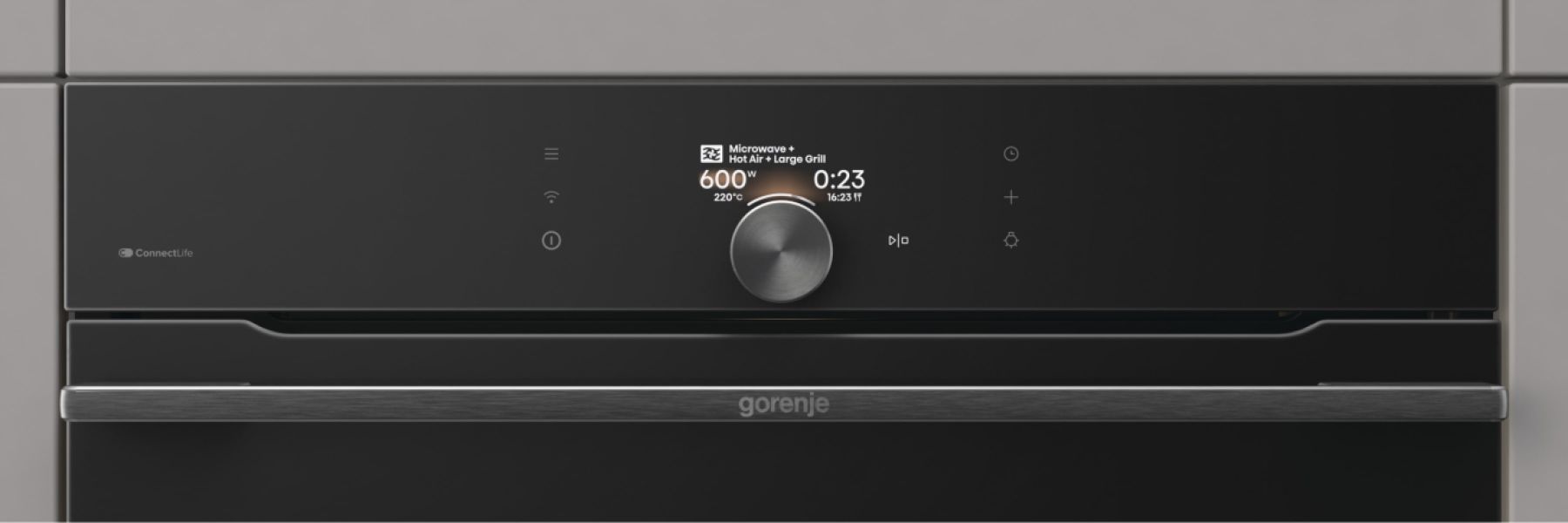 Духова шафа Gorenje електрична компактна, 50л, A+, дисплей, Wi-Fi, ф-ція мікрохвиль, чорний