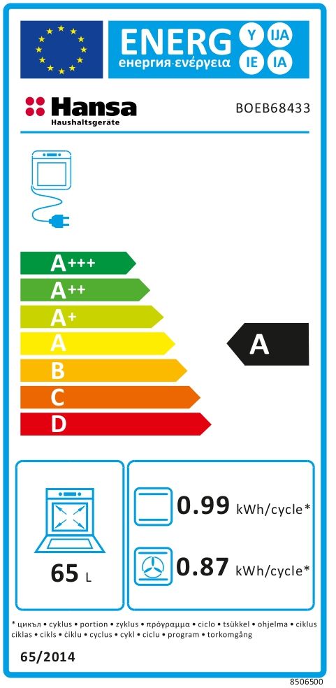 Духова шафа Hansa електрична, 65л, A, дисплей, конвекція, бежевий