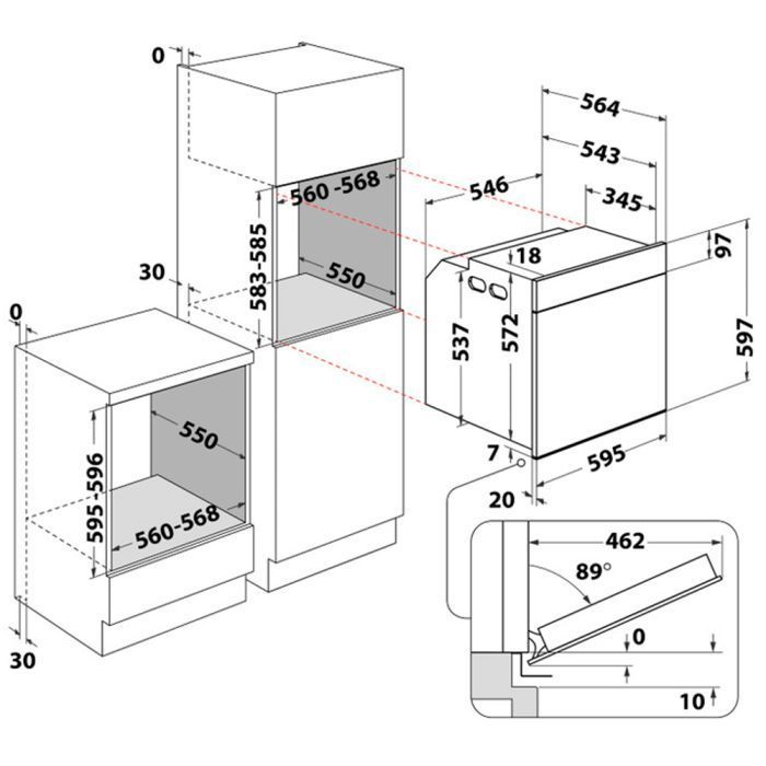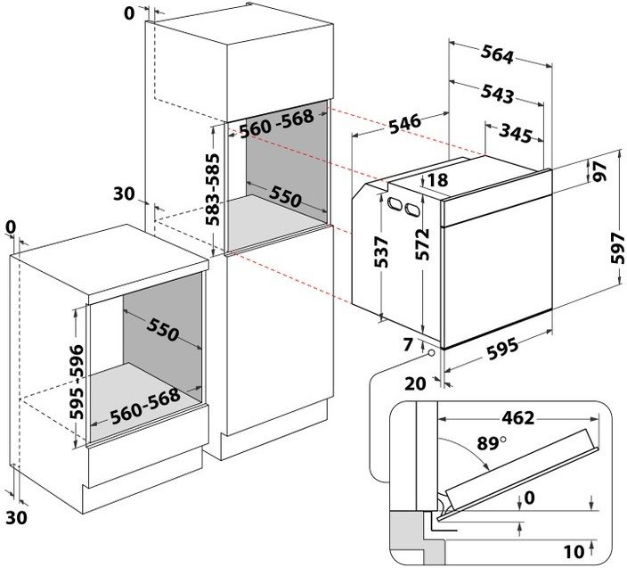 Розміри для вбудовування ( ВхШхГ ):58,3-58,5 x 55,8-56,8 x 55, 583–585×560–568×550