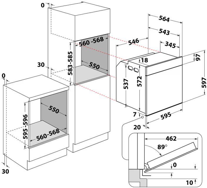 Розміри для вбудовування ( ВхШхГ ):600 x 560 x 550, 583x560x550