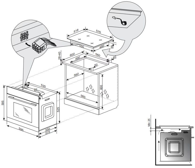 Розміри ніші (Ш x В x Г):560 x 595 x 560