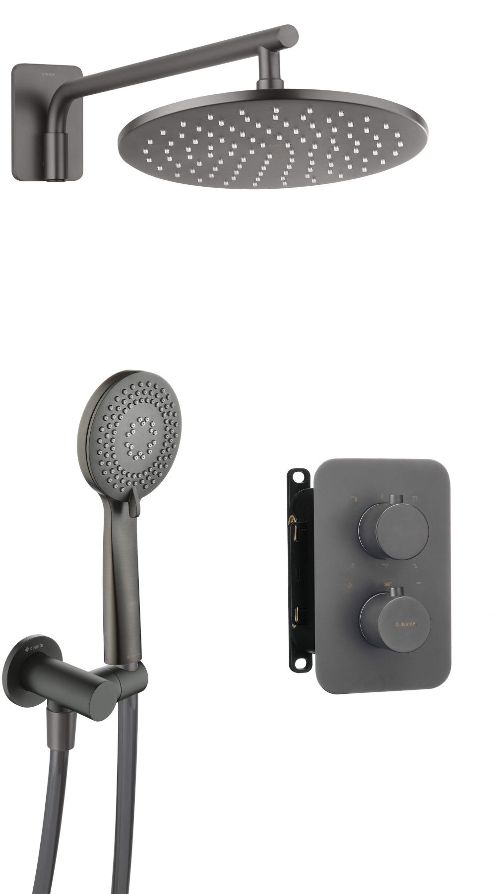 Душевий набір Deante Box з термостатичним змішувачем, верхній душ круг., лійка, кріпл. - прихованого монтажу, титан