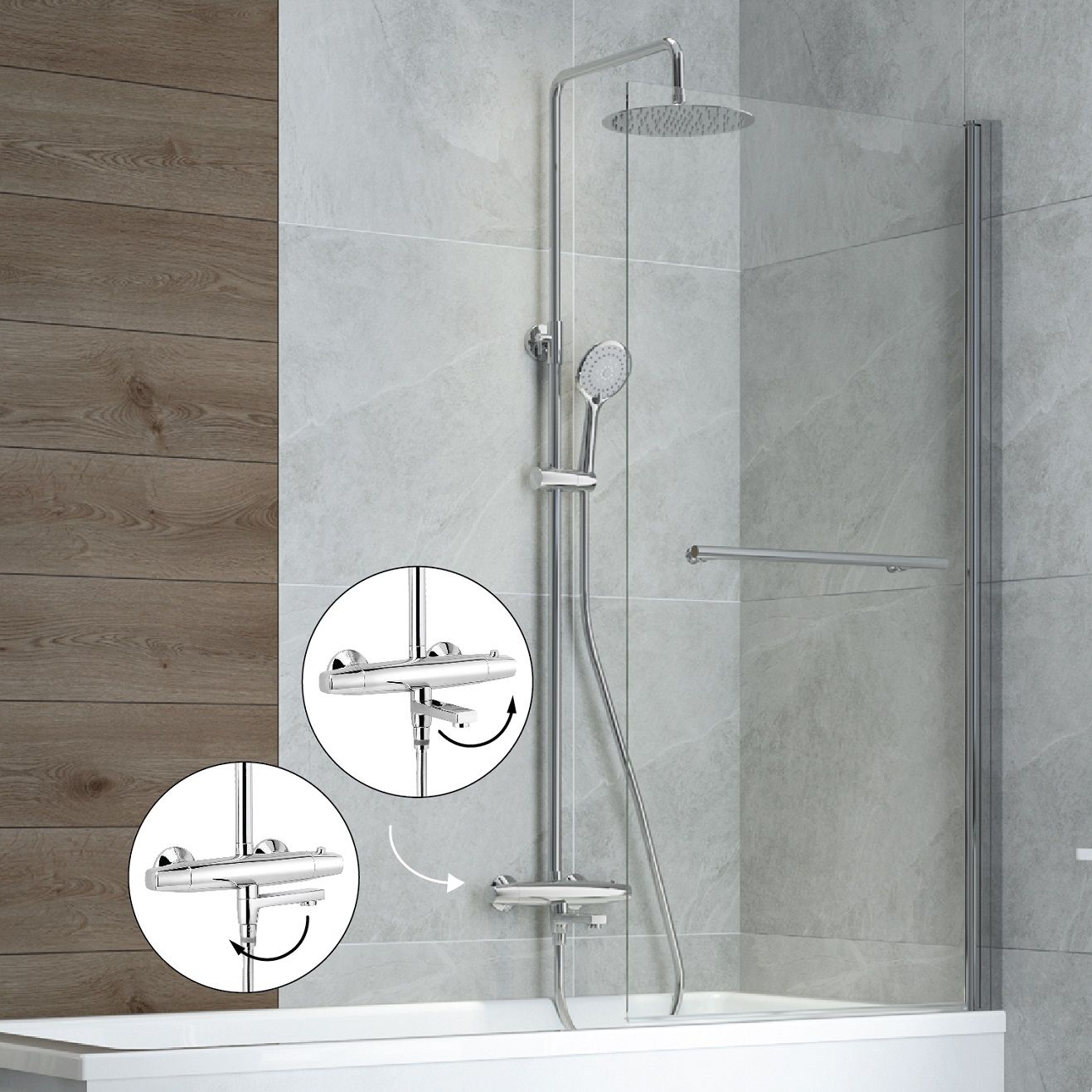 Душова система Deante Jasmin зі змішувачем-термостатом для душуі ванної, душ - 3 функц., кріпл. - на стійці, хром