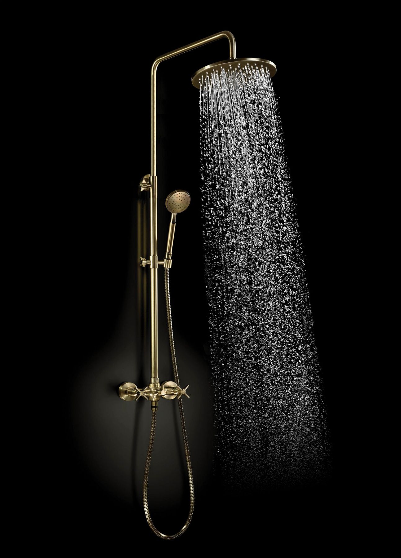 Душова система Deante Temisto зі змішувачем для ванни, душ - верхній душ, лійка, кріпл. - на стійці, латунь