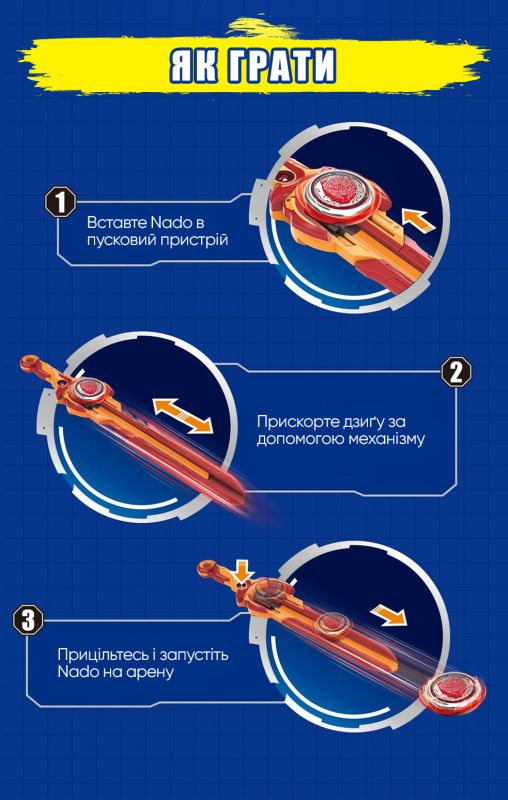 В комплекті:інструкція, дзиґа, батарейки, ключ для складання, лаунчер