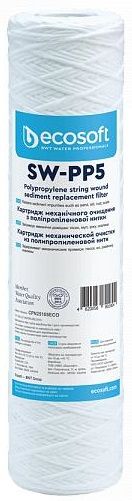Картридж Ecosoft 2.5x10" 5 мкм з поліпропіленової нитки підходить для очищення води від іржі, піску, мулу. Забезпечує захист сантехніки і трубопроводів від пошкоджень.