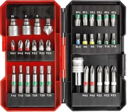 Набір біт KWB 108801 - універсальний набір біт та аксесуарів з 34 предметів для дрилів, акумуляторних викруток та шуруповертів Einhell.