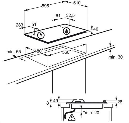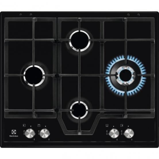 Electrolux GME363 - газова варильна поверхня із поворотними перемикачами.Розмір 59.5x51 см. Є газ-контроль та електрозапалювання. Решітки - чавунні.
