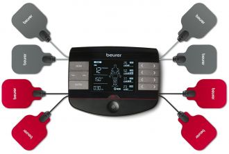 Електростимулятор Beurer EM 89 Heat — цифровий прилад 4-в-1, що поєднує режими TENS, EMS, масаж і тепловий вплив. Пристрій застосовується для зменшення больових відчуттів, стимуляції м’язів і розслаблення після фізичного навантаження. Чотири незалежні канали та вісім електродів дозволяють працювати одночасно з кількома зонами тіла. Система програм і можливість індивідуального налаштування забезпечують точне керування параметрами стимуляції.