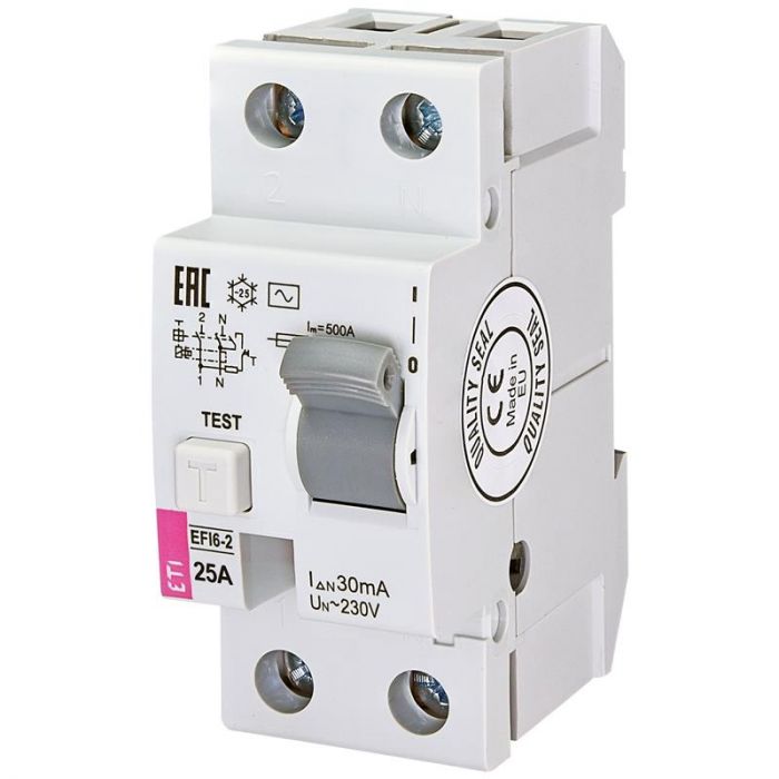 Реле диференційне ETI (УЗО) EFI6-2 25/0,03 тип AC (6kA)