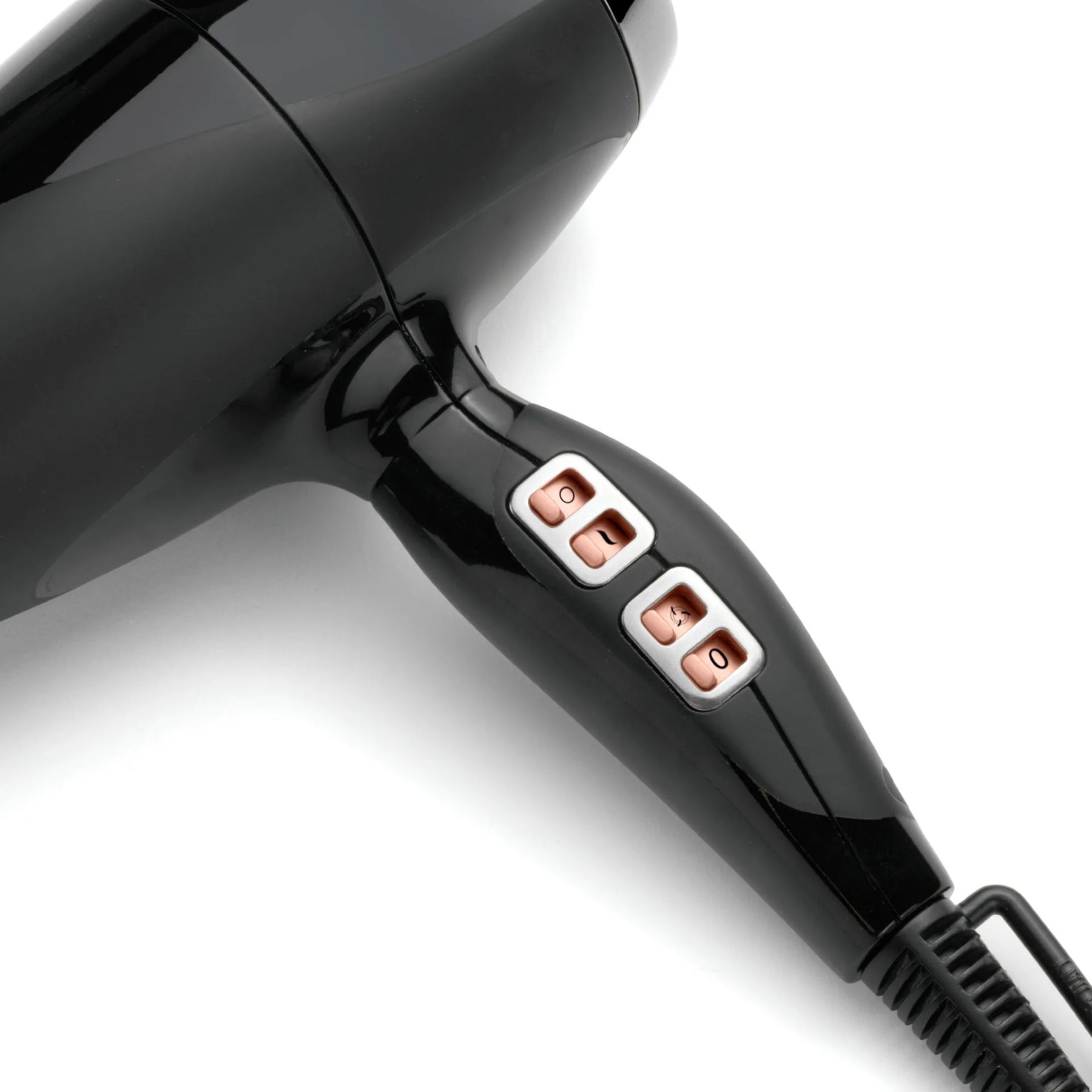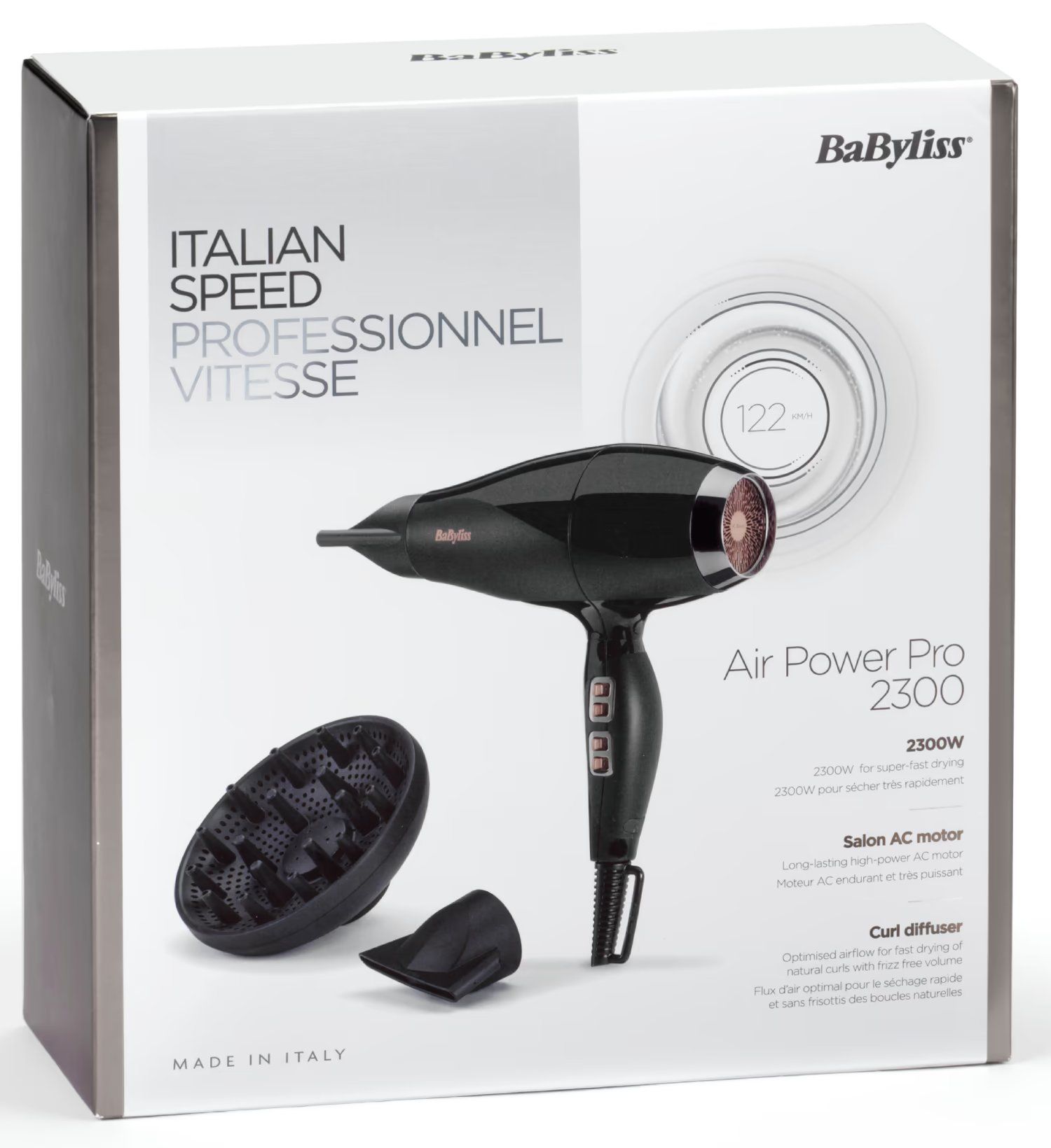 Фен Babyliss Air Power Pro 6716DE італійського виробництва має потужність 2300 Вт, 2 швидкості, 3 температурних режими, функцію іонізації для зменшення статичної електрики та дифузор для створення об’єму. Професійний АС двигун змінного струму з великим терміном служби. Він також оснащений холодним обдувом для фіксації зачіски та керамічним покриттям нагрівача, яке рівномірно розподіляє тепло.