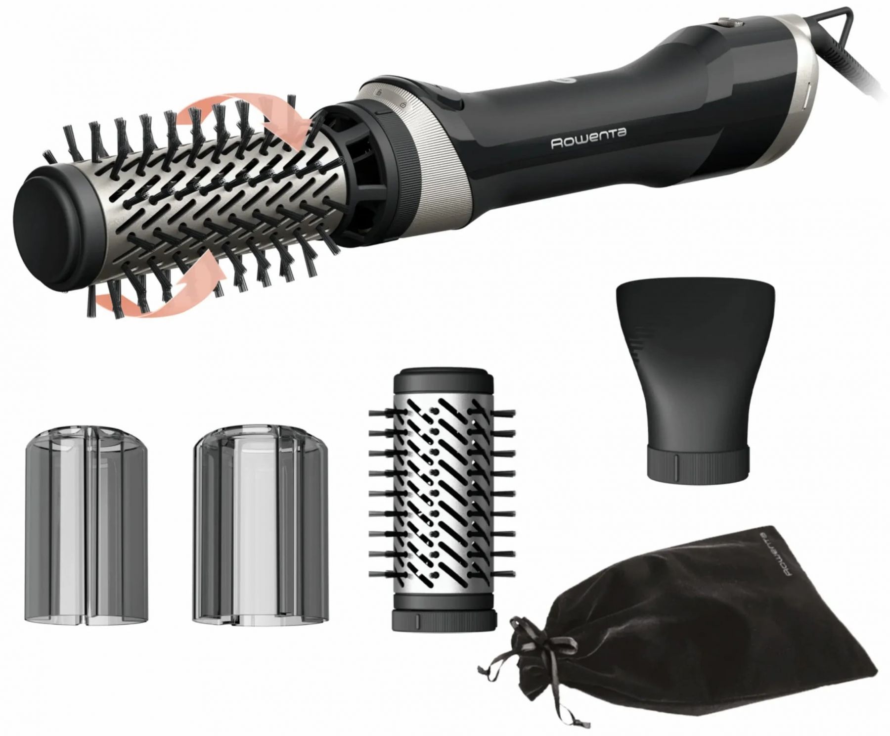 Фен-щітка Rowenta Brush Active, 1000Вт, 3 режими, іоніз-я, хол. обдув, оберт. насадка, 3 насадки, кераміка, чорний