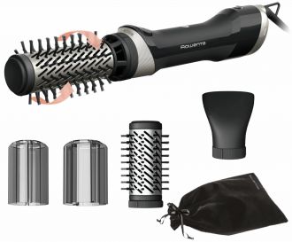 Фен-щітка Rowenta Brush Active поєднує сушіння та укладання в одному пристрої. Насадки-щітки обертаються у двох напрямках, що спрощує формування об’єму, хвиль або підкручених кінчиків. Передбачені іонізація та керамічне покриття щіток. Потужність 1000 Вт і два режими швидкості та температури дають змогу налаштувати потік повітря. У комплекті є концентратор і дві щітки діаметром 40 мм та 50 мм.