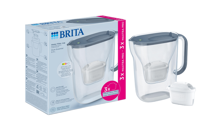 Фільтр-глечик Brita Style Essential MXPro 2.4л (1.4л очищеної води) + 3 картриджа сіро-блакитний