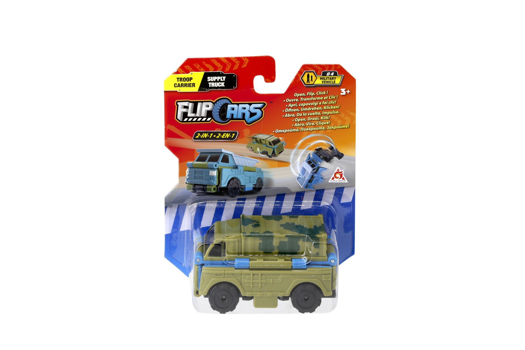 Машинка-трансформер Flip Cars 2 в 1 Військова вантажівка і Самоскид
