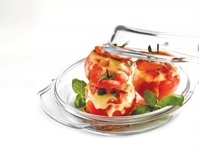 Універсальна форма для запікання з кришкою. Круглої форми з боросилікатного скла. Сумісна з усіма джерелами тепла (для всіх видів духовок).