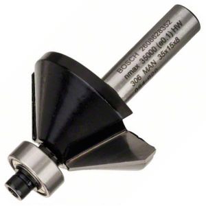 Фасочна фреза з хвостовиком 8 мм, шириною 11 мм, робочою 15 мм та загальною довжиною 56 мм, з кутом 45 градусів — робоча насадка для вертикального фрезера. Виготовлена з твердого сплаву, з двома лезами та шарикопідшипником фреза застосовується для зняття фасок з деталей з деревини та листових матеріалів. Підходить для виготовлення тонких декоративних пазів на меблях. Шарикопідшипник дозволяє легко вести інструмент прямо по заготівлі без використання шаблону.