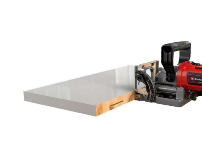 Фрезер ламельний акумуляторний Einhell TE-BJ 18 Li - Solo для плоских шкантів (ламелей) призначений для фрезерування пазів у масивній деревині, клеєній фанері та стружкових плитах, може використовуватись незалежно від джерела живлення. Складні конструкції можливі завдяки безступінчастій установці кута 0 – 90° та висоті фрезерування 0 – 40 мм. Глибина фрезерування може бути легко встановлена на 6-ступінчасте регулювання глибини різу до 20 мм, використовуючи функцію швидкого налаштування. Блокування шпинделя дозволяє легко змінювати фрези.