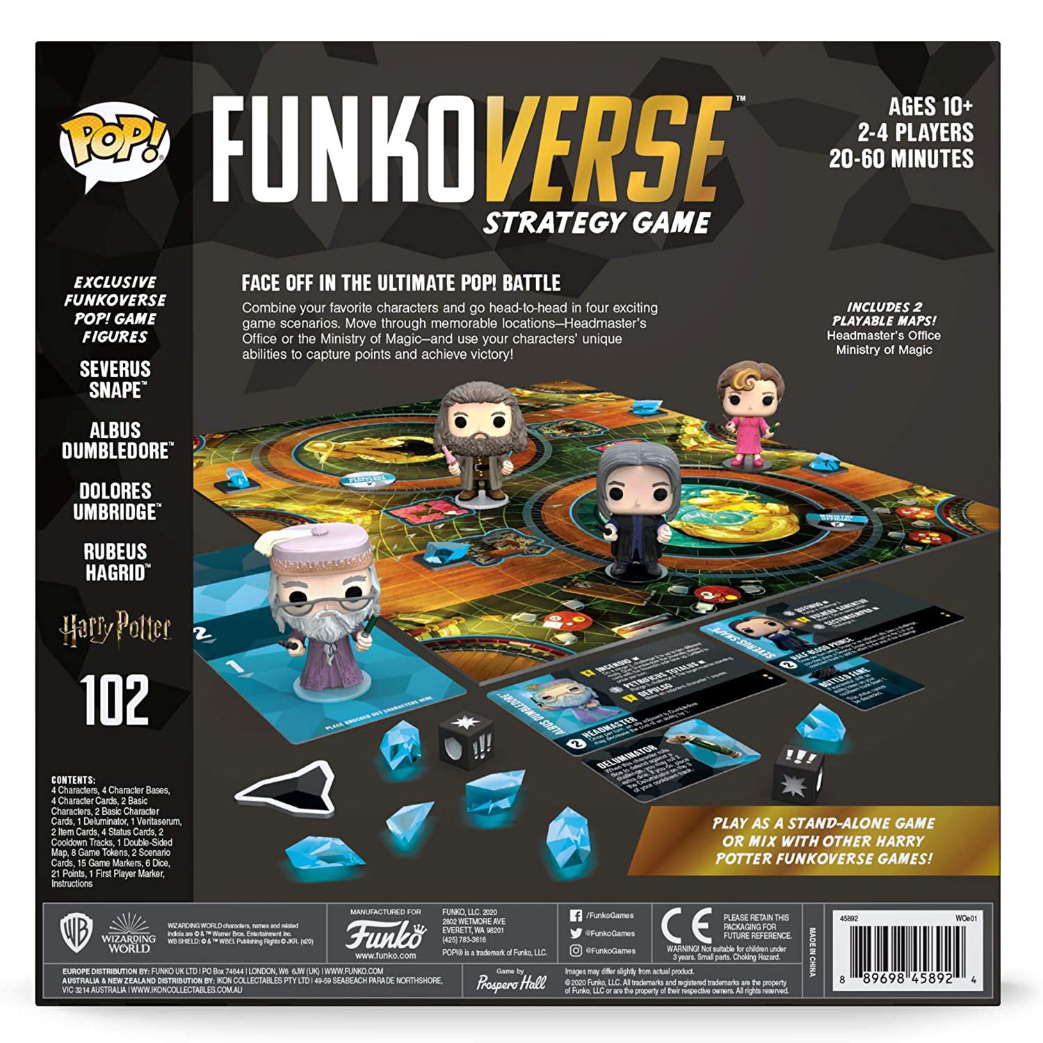 Настільна гра POP! Funkoverse Harry Potter 102 4 Pack 45892 виконана за мотивами франшизи "Гаррі Поттер". Серія фільмів про Гаррі Поттера - серія фільмів, заснованих на книгах про Гаррі Поттера англійської письменниці Дж. К. Роулінг. Серія випущена компанією Warner Bros. і складається з 8 фільмів в жанрі фентезі, включаючи основну серію - починаючи з «Гаррі Поттер і Філософський Камінь» (2001) і закінчуючи «Гаррі Поттер і Дари Смерті: Частина 2» (2011) - а також спін-офф «Фантастичні тварини і де вони мешкають »і його сіквел« Фантастичні тварини: Злочини Грін-де-Вальда ».