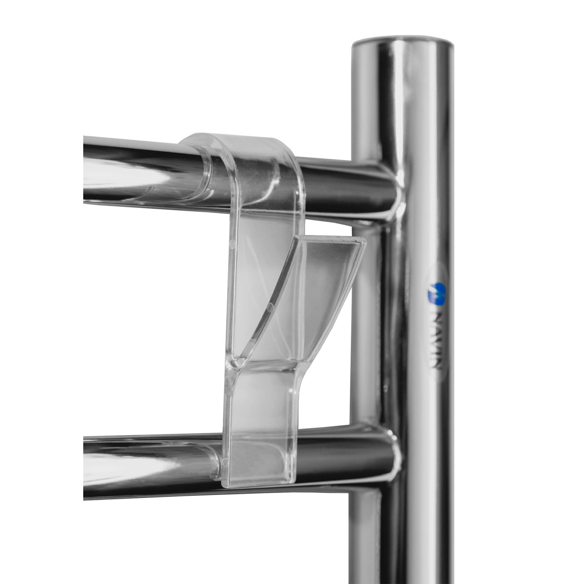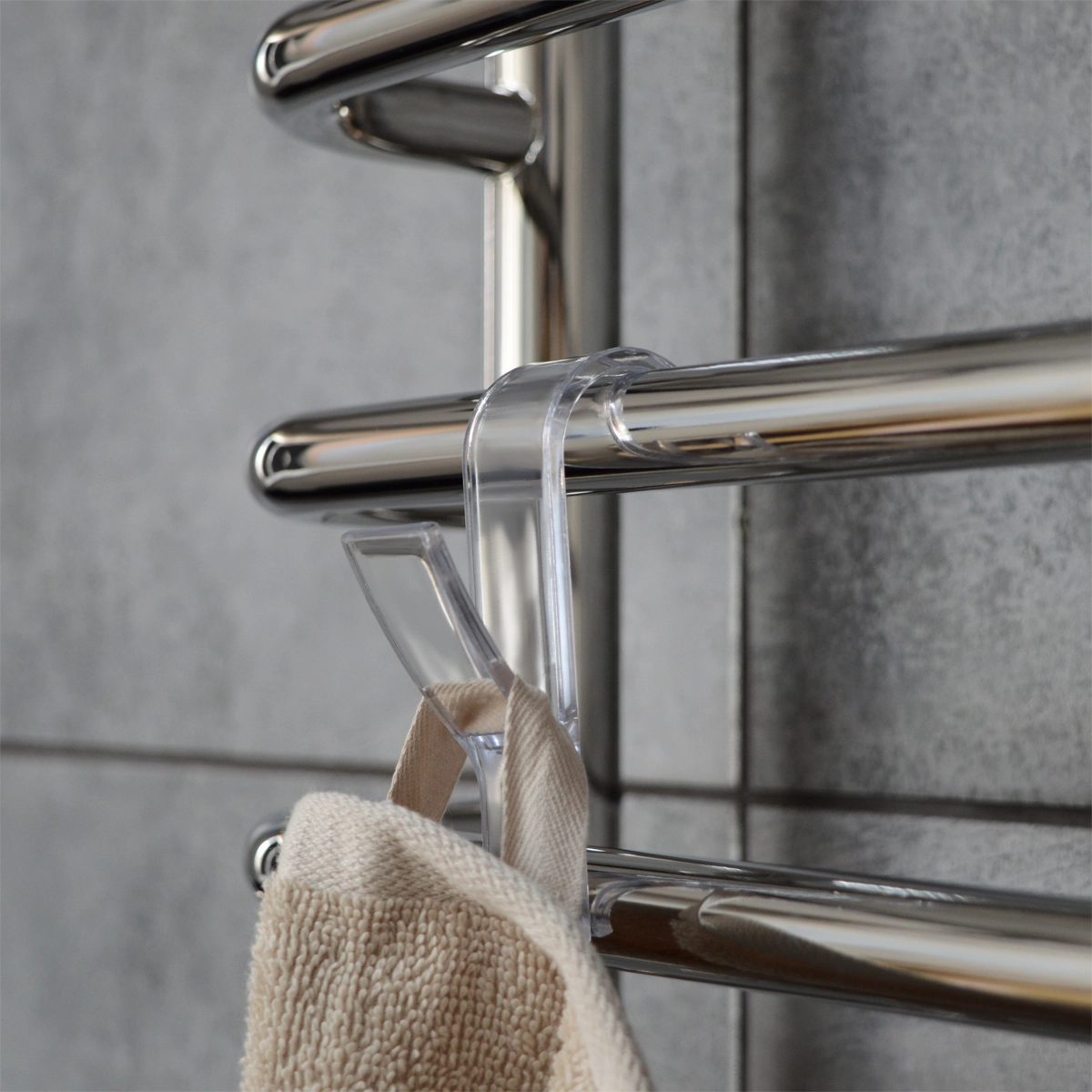 A practical and very convenient hook for standard heated towel rails, made of durable, transparent plastic. This branded accessory is suitable for both NAVIN heated towel rails and most dryers from other manufacturers.