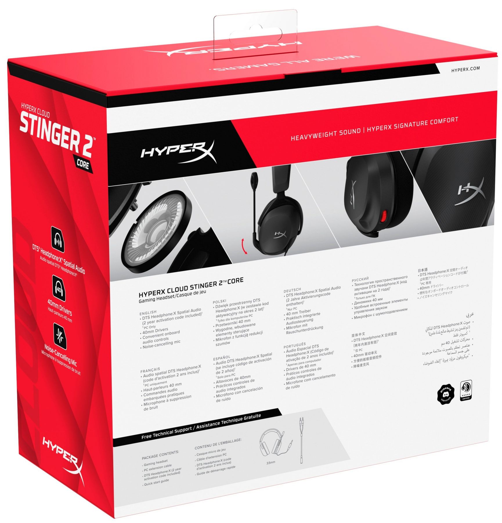 Гарнітура базового рівня HyperX Cloud Stinger 2 Core призначена в першу чергу для тих геймерів, що грають на ПК, яким потрібна висока якість звуку за доступної ціни. Вона зручна для тривалих ігрових сесій: невелика вага, якісна звукова сцена та інтуїтивне керування дозволяють повністю зосередитися на ігровому процесі. 40-міліметрові динаміки розташовані так, щоб забезпечити повне занурення у гру. Гарнітура HyperX Cloud Stinger 2 Core сумісна з ПК та безліччю ігрових платформ, забезпечена дворічною гарантією та безкоштовною технічною підтримкою.