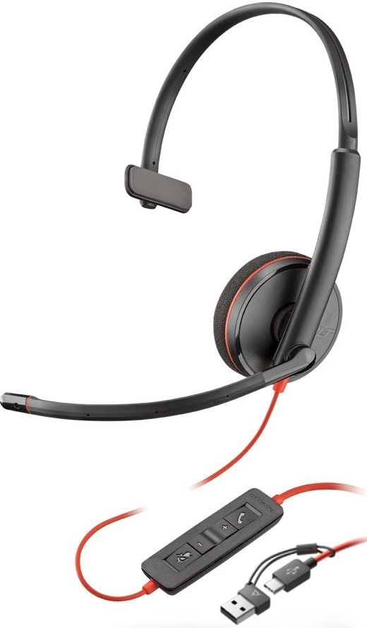 Гарнітура комп'ютерна моно On-ear Poly Blackwire 3210, USB-A, USB-C, всеспрямований, чорний