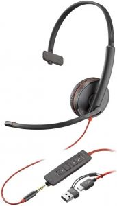 Гарнітура комп'ютерна моно On-ear Poly Blackwire 3215, USB-A, USB-C, 3.5 мм, всеспрямований, чорний