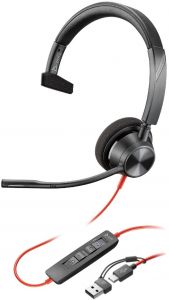 Гарнітура комп'ютерна моно On-ear Poly Blackwire 3310-M, USB-A, USB-C, всеспрямований, Microsoft Teams, чорний