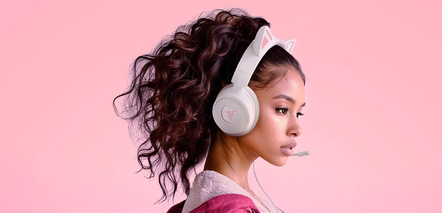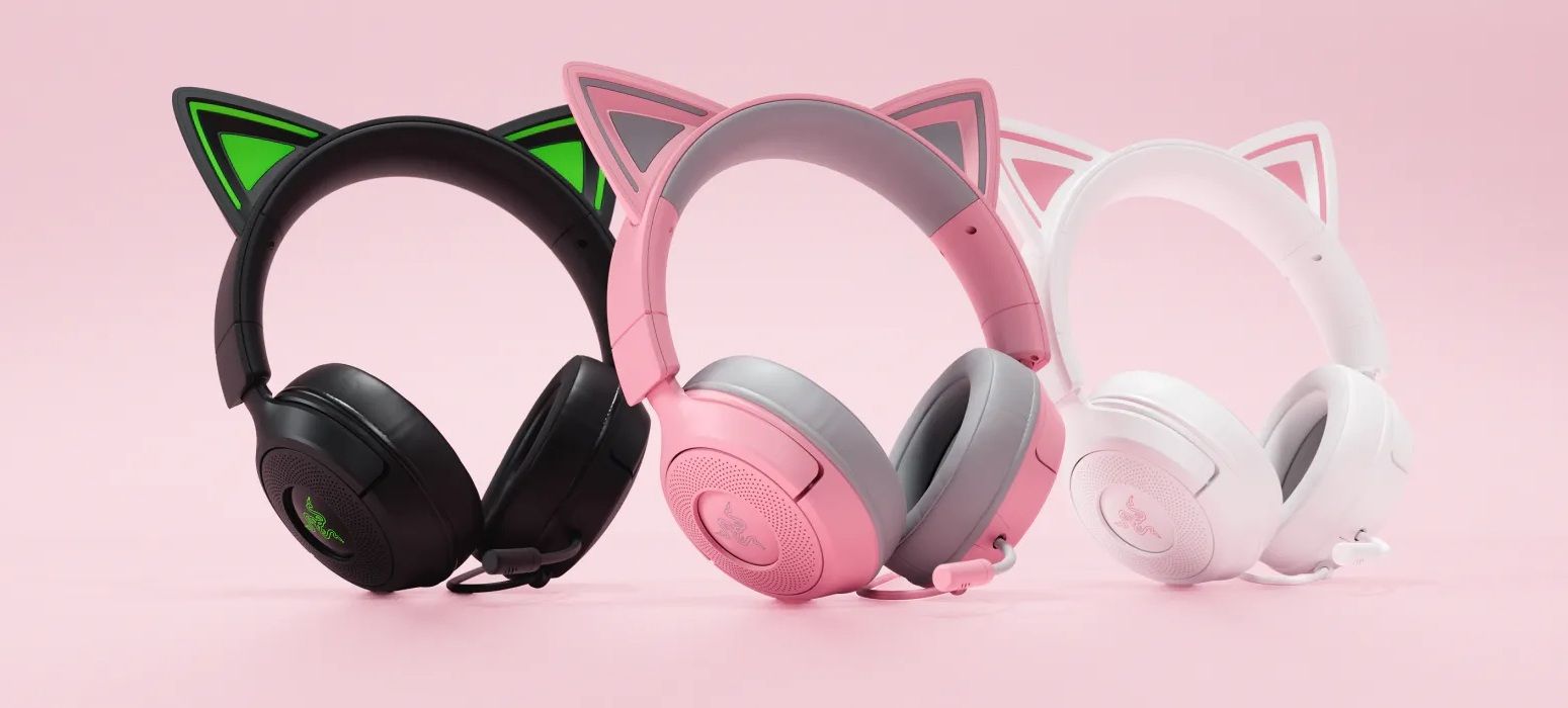 Razer Kraken Kitty V3 X – легка провідна гарнітура з котячими вушками, що поєднує грайливий дизайн із тривалим комфортом завдяки вазі лише 270 г. Динаміки Razer TriForce 40 мм розділяють частотний діапазон на три незалежні компоненти для чітких високих, насичених середніх і глибоких низьких частот. Кардіоїдний мікрофон HyperClear забезпечує природну передачу голосу з ефективним придушенням фонового шуму, а віртуальний 7.1 звук допомагає точно визначати напрямок джерел звуку в грі.