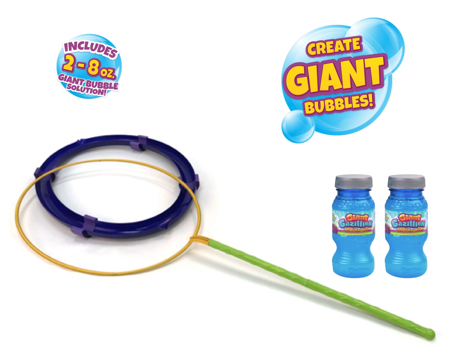 За допомогою Giant Gazillion Bubbles® Kid-In-A-Bubble ви можете створити міхур настільки великий, що в нього поміститься дитина! Просто заповніть лоток розчином Giant Gazillion Bubbles Solution, опустіть гігантську паличку в лоток і обережно підніміть вгору, щоб створити гігантський міхур! Завдяки простій збірці і легкої очищення задоволення від бульбашок ніколи не закінчиться! Кожен Kid-In-A-Bubble включає в себе дві 8oz. пляшки розчину Giant Gazillion Bubbles. Підходить для дітей від 3 років