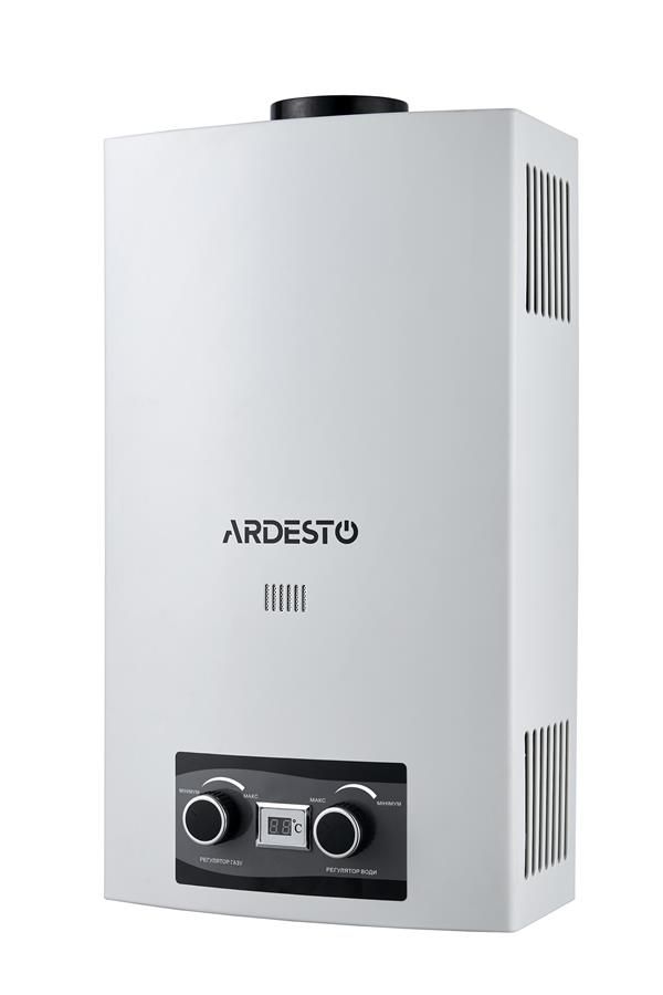 Газова колонка Ardesto X2, 10 л/хв., 20 кВт, розпалювання від батарейок, дисплей, білий