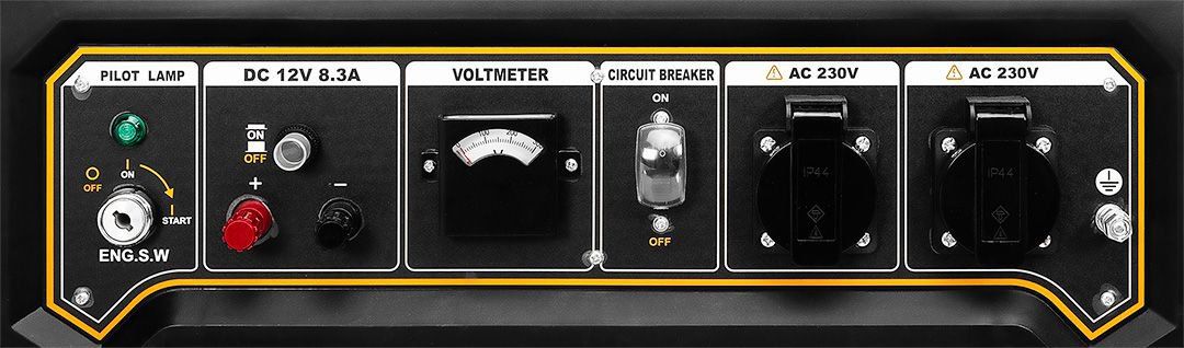 Функції:Вольтметр, Автоматичне регулеровання напруги AVR, Датчик рівня масла, Захист двигуна від низького рівня масла, Транспортувальні колеса, Ручки для перенесення, сертифікат CE