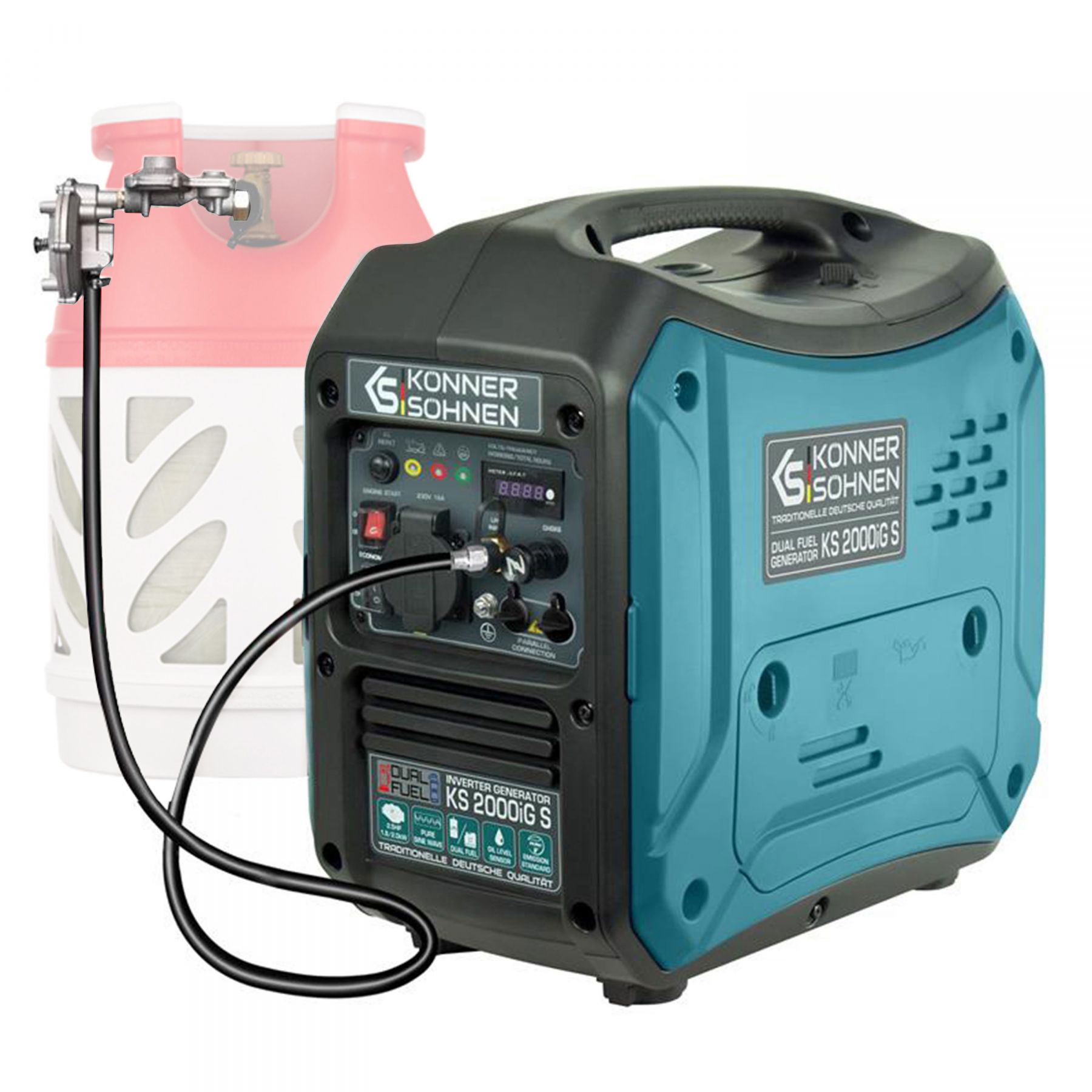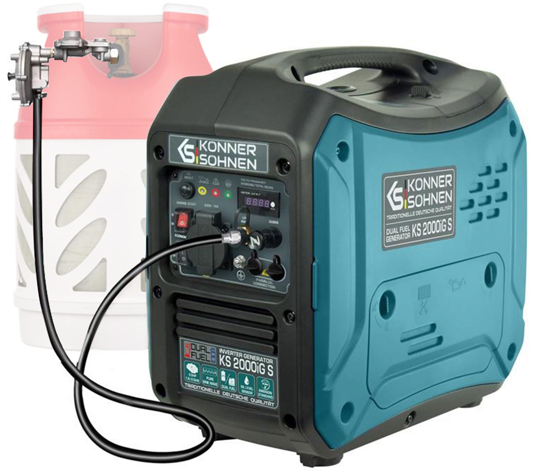 Газобензиновий генератор інверторного типу KS 2000iG S німецької торгової марки Könner&Söhnen в шумозахисному корпусі – це зручне та компактне джерело електроенергії з низьким рівнем шуму. Ключова особливість даної моделі полягає в тому, що вона виробляє електричний струм з правильною синусоїдою.