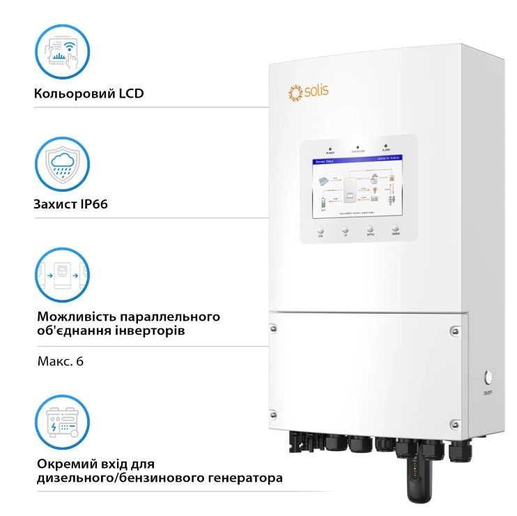 Гібридний інвертор однофазний Solis S6 8кВт, 2xMPPT, DC, для LV Batteries
