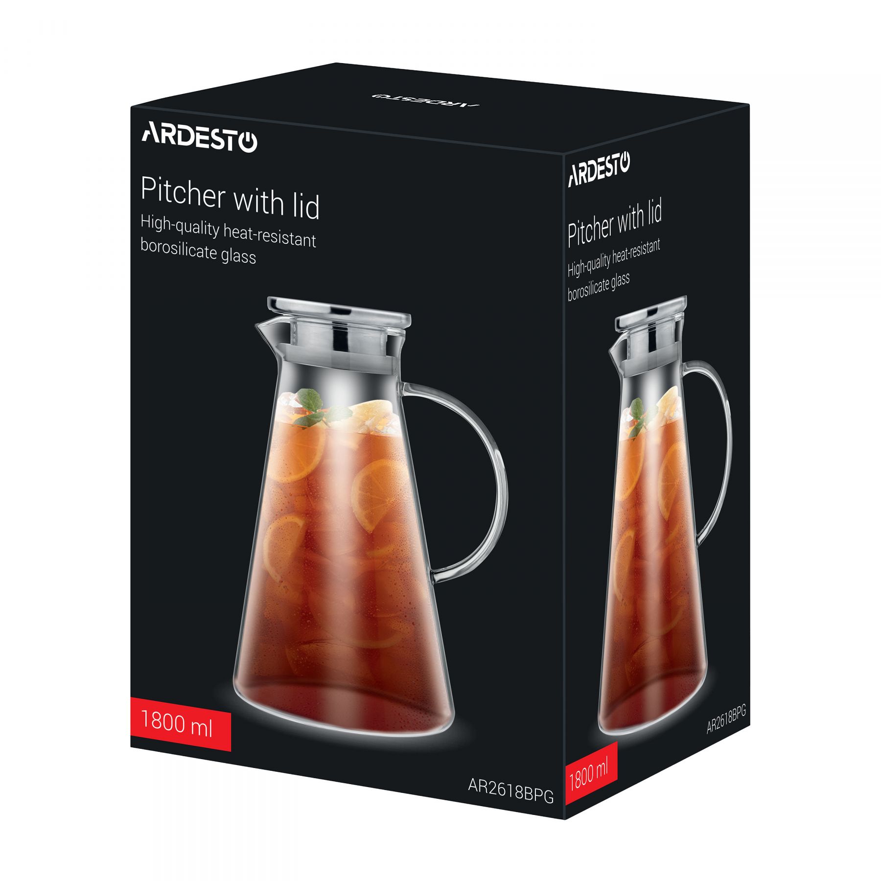 Глечик з кришкою Ardesto 1800мл, боросилікатне скло, нержавіюча сталь, прозорий