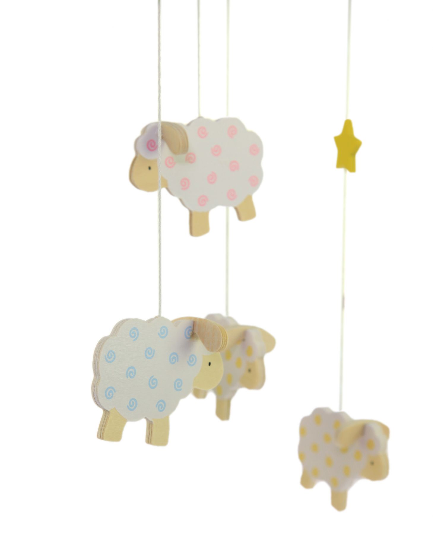 Дерев’яний мобіль «Овечки» німецького виробника іграшок goki– може бути як яскравим аксесуаром у дитячій кімнаті, так і розвиваючою іграшкою для найменших. Мобіль «Овечки» привертає увагу легкістю та ніжністю. Сім білих овечок немов кружляють під нічним зірковим небом. Навіть невеликий подих вітру приведе в рух дитячий мобіль. Екологічні та безпечні матеріали забезпечать здоровий сон малюків.
