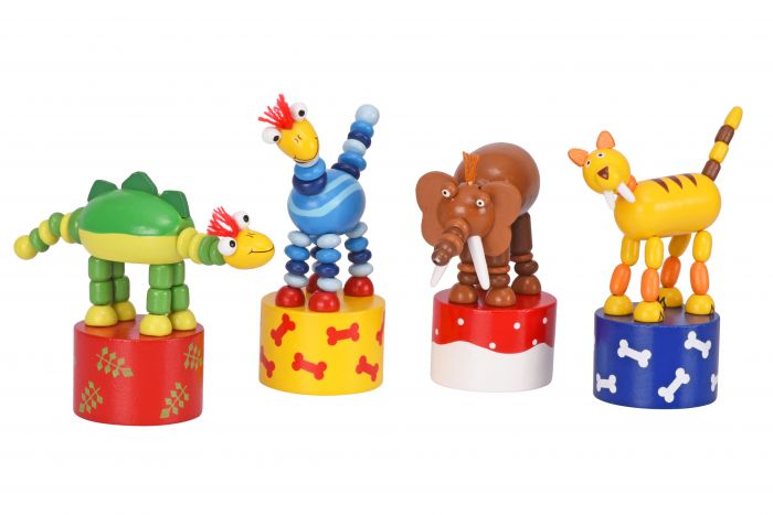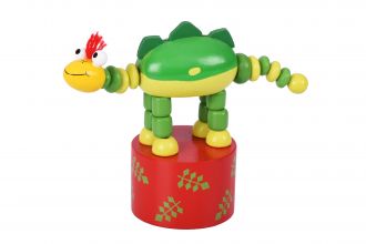 Милий кольоровий динозавр – це дерев’яна іграшка німецького бренду goki. Іграшка за принципом «натискай і тряси» принесе дітлахам безліч емоцій та задоволення. Натискаючи на кнопку знизу, динозавр почне жваво рухатись, присідати, нахилятись, а його голова - обертатиметься. Іграшка-шейкер вироблена із натурального дерева, воно якісно оброблене і вкрите безпечними кольоровими фарбами на водній основі. Для дітей від 3-х років. Довжина 12 см., діаметр основи 4,5 см.
