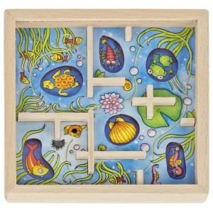Кожна мама хоче бути впевненою у тому, що її дитина правильно розвивається, а іграшки лише допомагають малюкові у цьому, не завдаючи шкоди. Сучасні виробники пропонують безліч варіантів, проте найбільшою популярністю серед батьків користуються саме дерев’яні іграшки. Їх екологічність, висока якість і надійність будуть гарантією того, що іграшки прослужать набагато довше, аніж пластикові аналоги. Пориньте у захоплюючий світ океану та його жителів, розвиваючи логічне мислення та концентрацію уваги, разом з лабіринтом-головоломкою «Підводний світ». Лабіринт від німецького бренда goki виготовлений з якісної деревини. Підходить як для хлопчиків, так і для дівчаток. Розмір : 12.2x12.2x1.7 см. Рекомендований вік : 5+.
