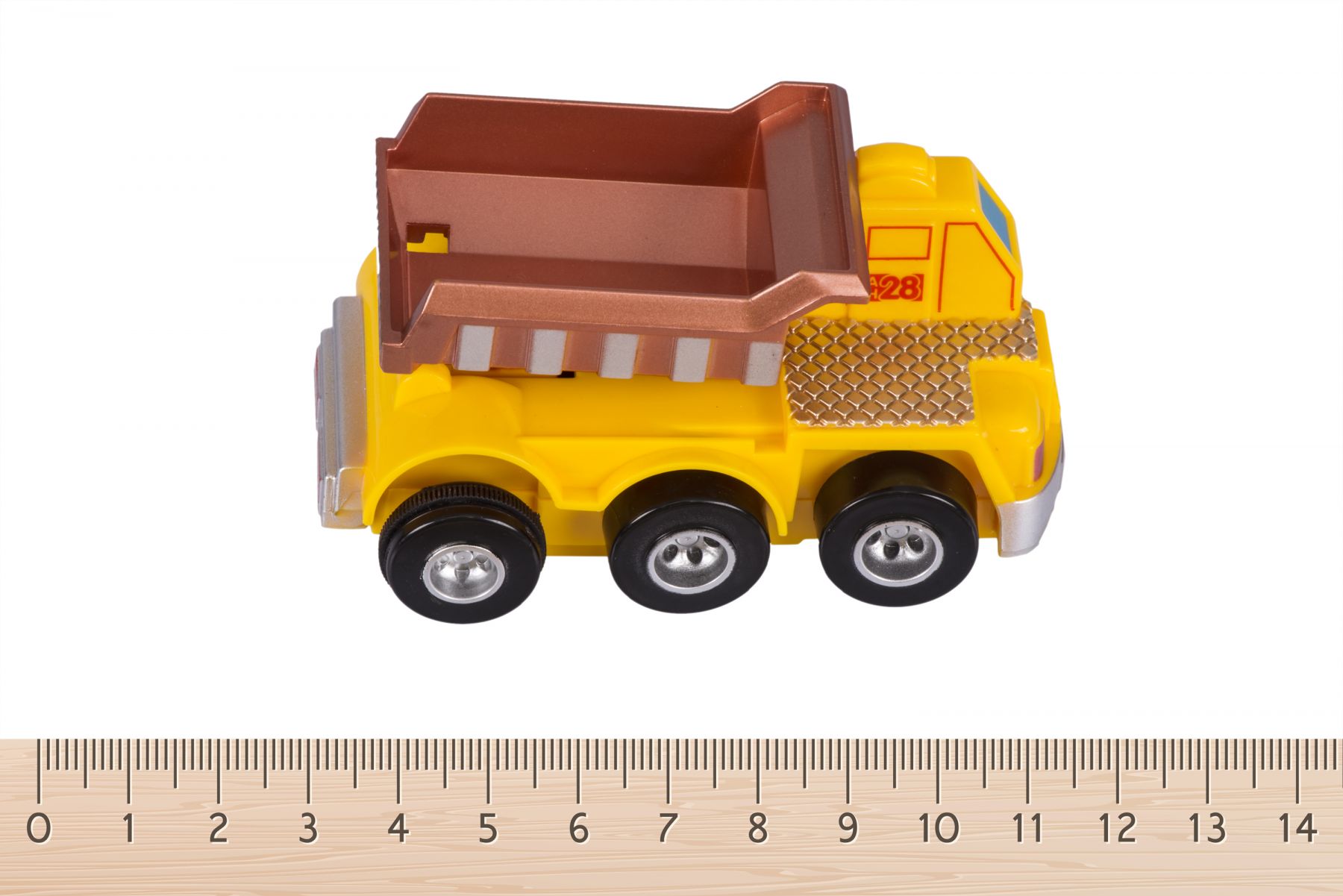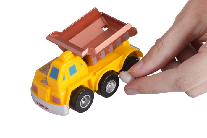 Заводна яскрава вантажівка – один із автомобілів серії «Спецтехніка» німецького бренду goki. Машинка з заводним механізмом. Виготовлена із безпечного, нешкідливого пластику. Конструкція виробу міцна. Іграшка для дітей від чотирьох років. Розміри машинки – 9 х 6 x 5 см