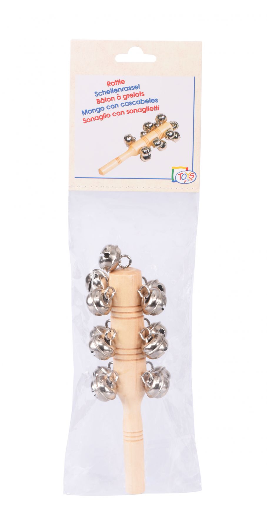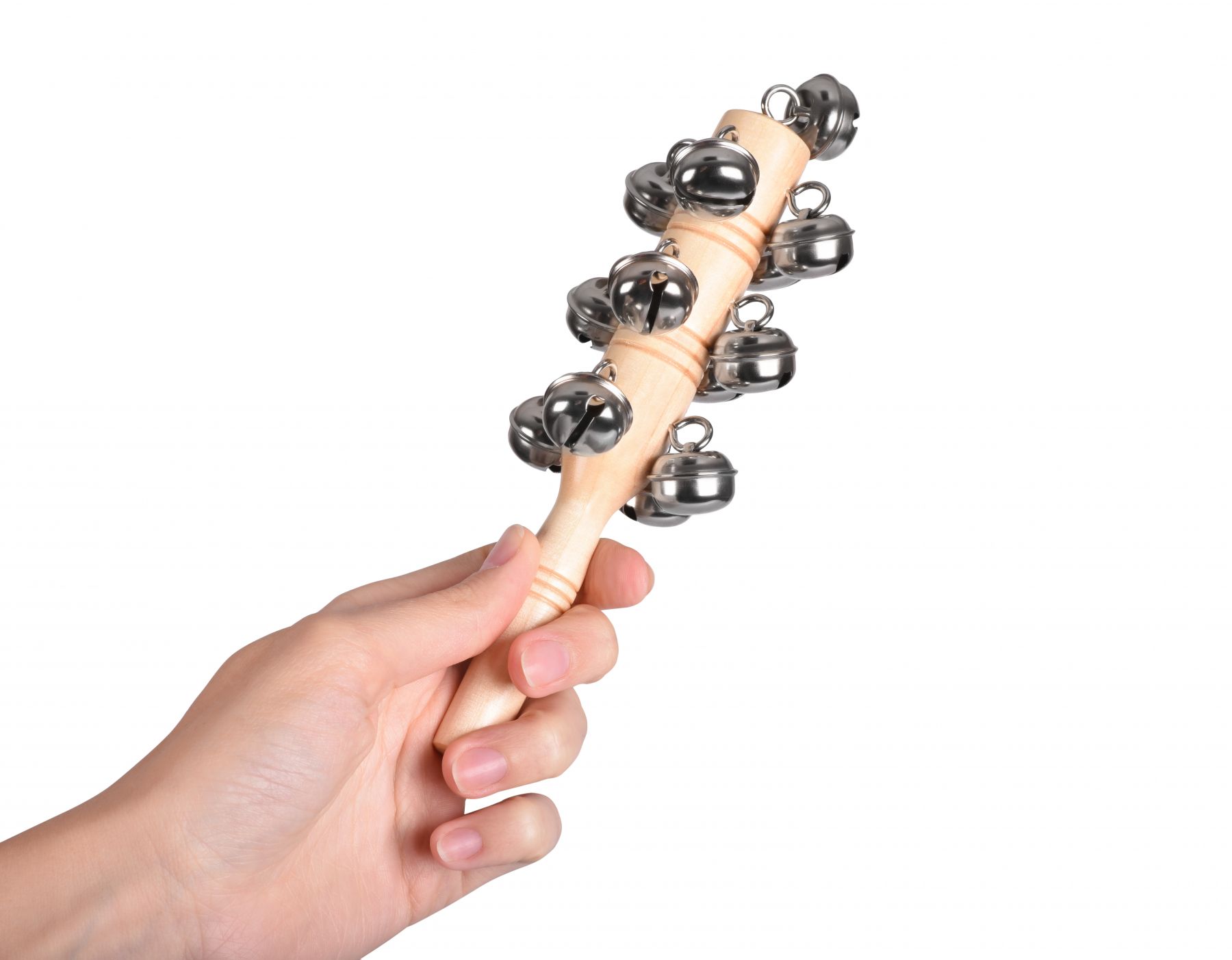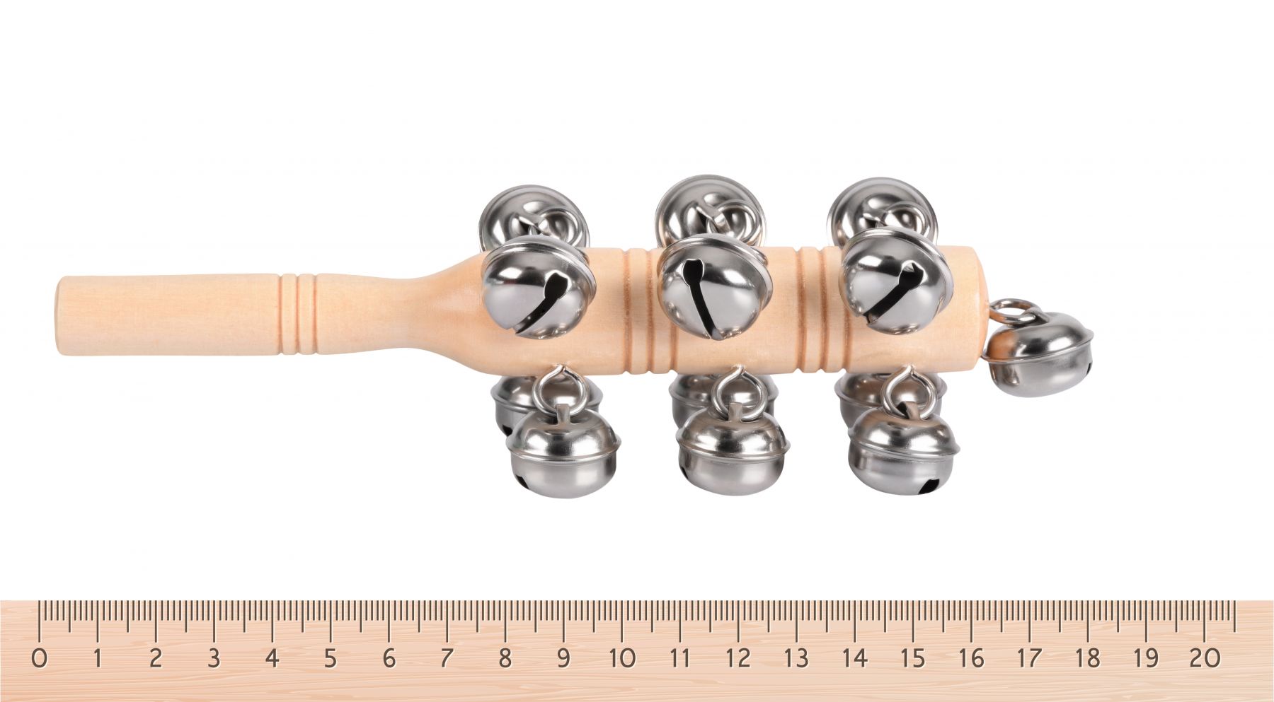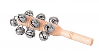 Бубонець на дерев’яній ручці – музичний інструмент із приємним, дзвінким звучанням. Інструмент німецького виробника іграшок goki. Ручка-тримач із натуральної, безпечної деревини; вона гладенько відшліфована, без зазубрин. Брязкіт дзвіночків бубонця чарує і привертає увагу. Інструмент призначений для дітей від трьох років. Ручка завдовжки 18,5 см. Кількість дзвіночків – 13.