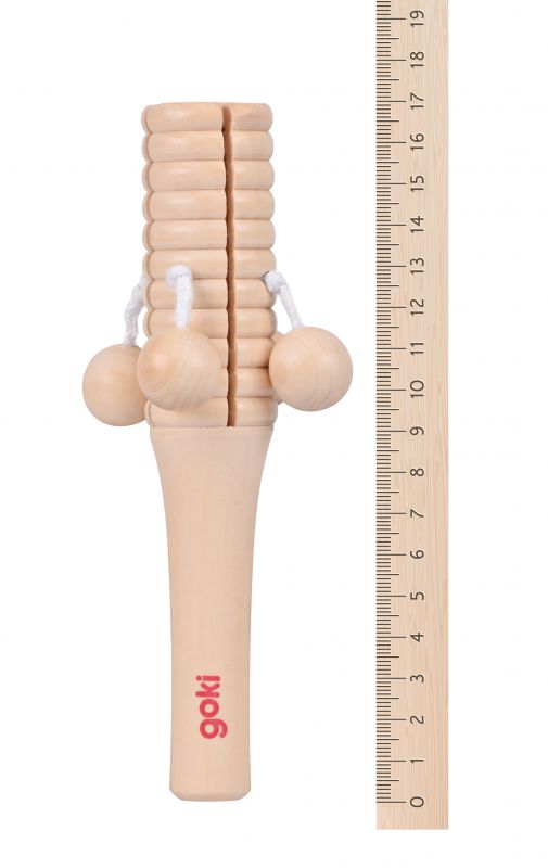 Ударний музичний інструмент «стукач» німецького виробника іграшок goki приверне увагу дитини. Виріб можна використовувати не лише як музичний інструмент, а й як іграшку. Виріб дерев’яний; матеріал гладенько відшліфований, дуже приємний на дотик. Інструмент видає оригінальний звук-стукіт. Довжина виробу – 16 см. Призначений для дітей від трьох років.