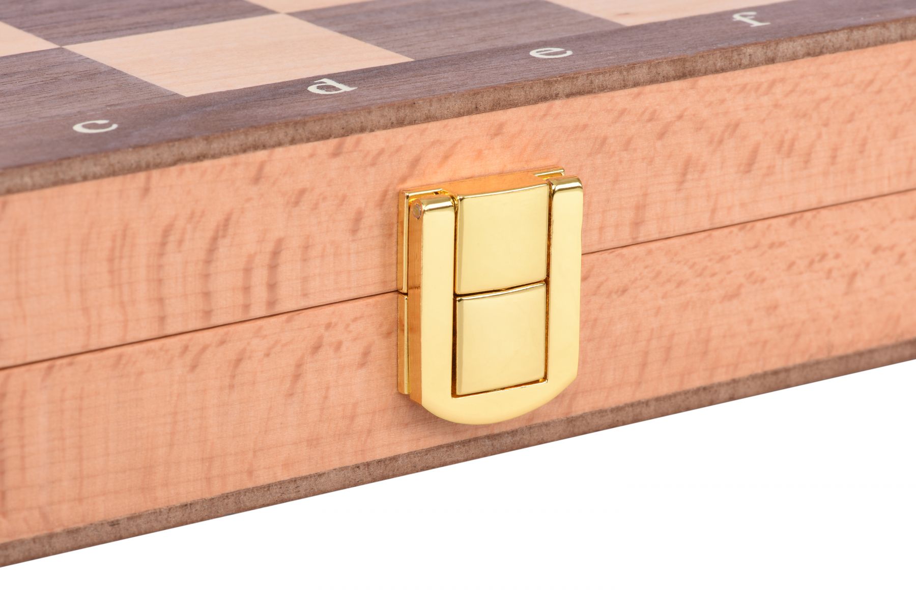 Шахи – чудовий тренажер для мозку, що розвиває інтелектуальні здібності. Під час гри одночасно розвиваються обидві півкулі головного мозку, завдяки чому розвивається як логічне, так і абстракте мислення. Німецький виробник іграшок goki пропонує дітлахам шахи – гру для двох, що повністю вироблена із натуральної деревини. Якість її обробки – на високому рівні, як і різьблення по дереву, елементи набору дуже приємно тримати у руках. Дошка складається вдвоє, закривається на металевий замочок, шахи зручно брати з собою у подорож. Рекомендовано дітлахам від 7-ми років.