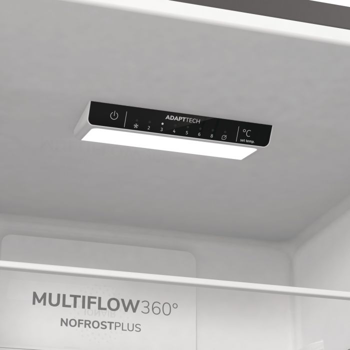 Холодильник з технологією AdaptTech, що запам’ятовує ваші звички. Ця інтелектуальна система призначена для підтримки сталої температури в холодильнику незалежно від частоти відчинення дверцят. Холодильник постійно відстежує, як його використовують, і адаптує температуру, щоб запобігти її підвищенню, зберегти продукти свіжими та знизити витрати електроенергії. Функція FastFreeze заморожує продукти при температурі –24 °C, щоб зберегти більшу частину мінералів, що містяться в них. Технологія IonAir створює негативно заряджені іони в приладі, які рівномірно розподіляються в холодильній камері за допомогою нової системи MultiFlow 360°.