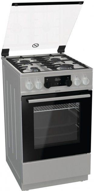 Плита Gorenje KS5351XF/комбінована/електр.програматор/50х60/духовка-70 л/ газ.контроль/гриль/електроподжиг/чугун.реш/нержав.сталь