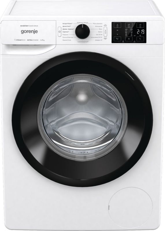 Пральна машина з фронт. загр. Gorenje WNEI72SBS, інверторна, 7кг, 1200, A+++, Пара, глибина 46.5см, Дисплей, Білий