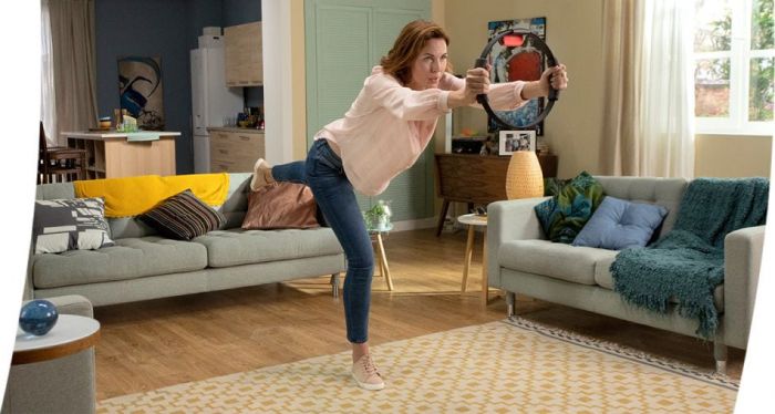 Гра Ring Fit Adventure + контролер + ремінь. Пригода, яке змусить вас попотіти! Візьміть в руки аксесуар Ring-Con і надіньте ремінь на ногу. Час вирушати в фітнес-пригода! Досліджуйте фентезійний світ і здолайте дракона-культуриста і його поплічників за допомогою справжніх фізичних вправ в Ring Fit Adventure, фітнес-відеогрі для Nintendo Switch! Біжіть на місці, щоб переміщатися по смарагдовим рівнинах, робіть жим над головою, щоб атакувати ворогів, і виконуйте пози йоги, щоб відновити шкалу здоров'я.